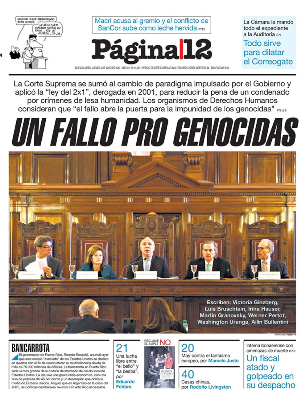 Tapa de Página/12 del 4 de mayo de 2017.